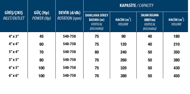 GEREKLİ GÜÇ : 5'' POMPA 50 HP VE ÜZERİ
